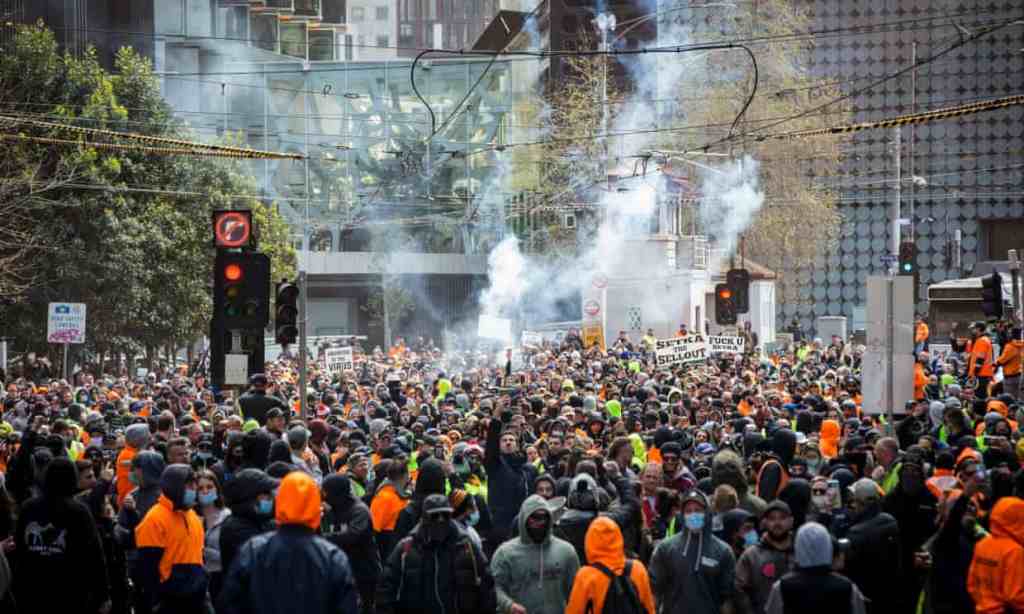 So how did it come to this? While there is some contention regarding the protests’ aims, it is widely accepted that they originated in response to the introduction of mandatory Covid-19 vaccinations for construction workers. The Victorian Building Authority explained that the Victorian government introduced this measure in response to a number of Covid cases being traced to construction workers, stating that “Construction workers are often highly mobile and the risk of spreading coronavirus in these settings as evidenced by recent outbreaks is concerning.” This regulation mirrored similar legislation previously introduced in NSW.